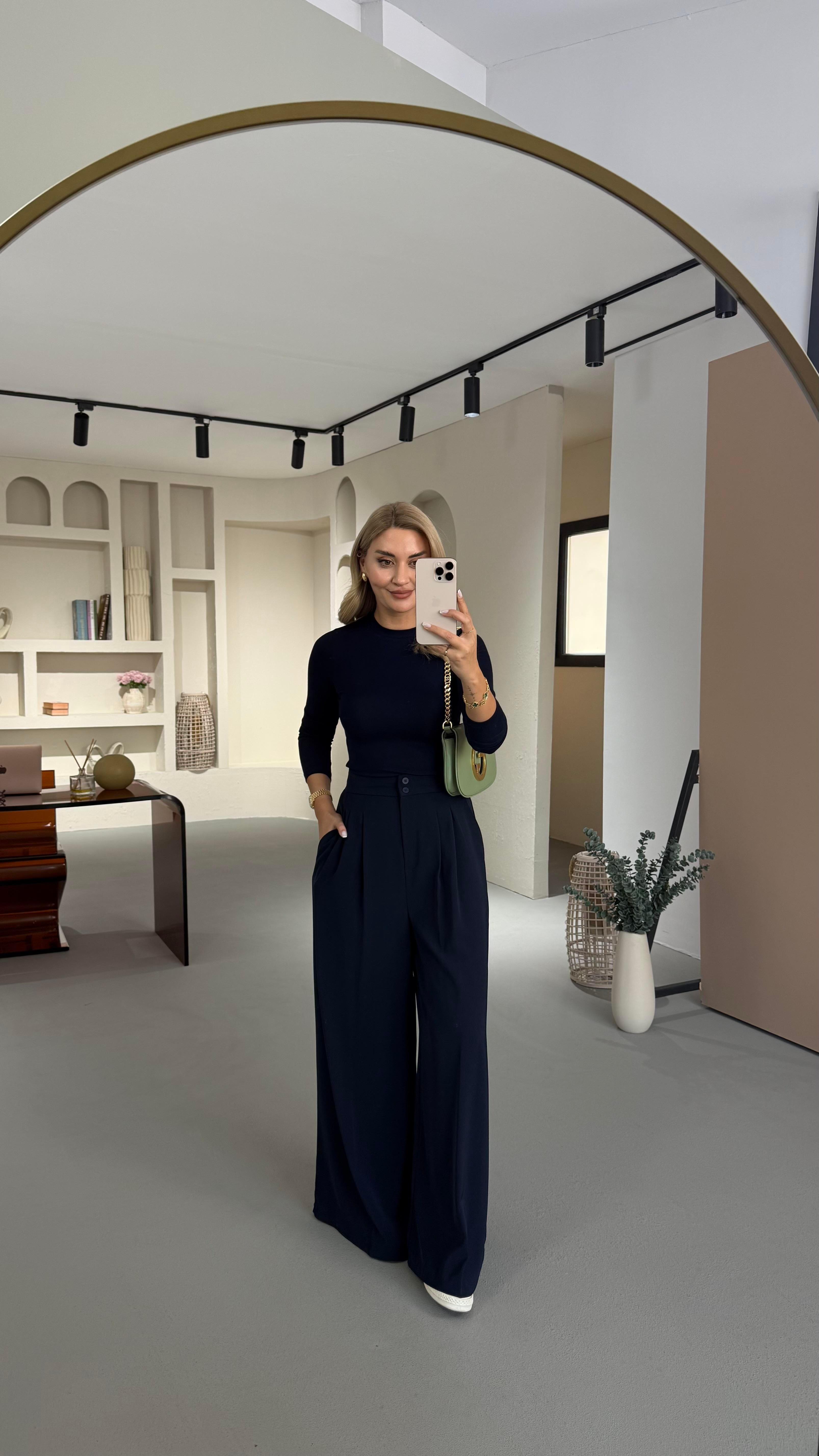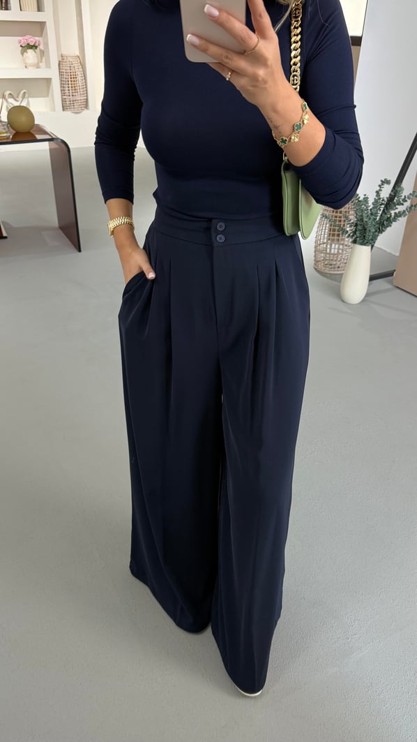 Özel Seri Çift Piliseli Lacivert Palazzo Pantolon (ÖN SİPARİŞ)