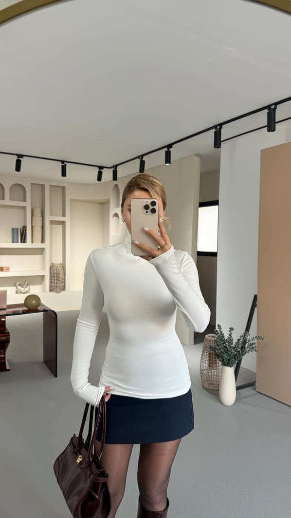 Premium Seri Beyaz Balıkçı Yaka Pamuklu Basic Bluz