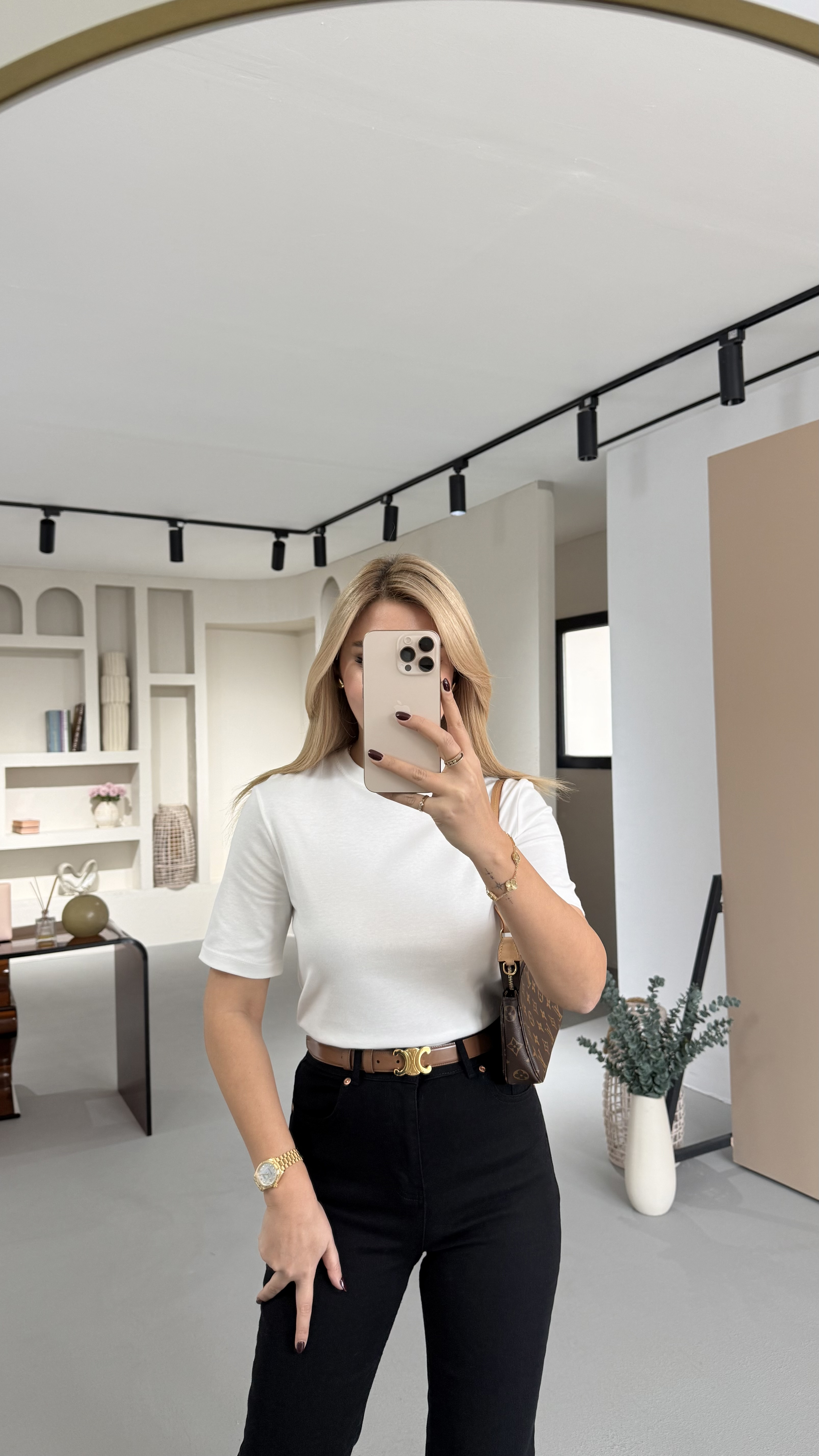 Premium Seri Bisiklet Yaka Pamuklu Beyaz Basic Tshirt (TSH-0120-BYZ)