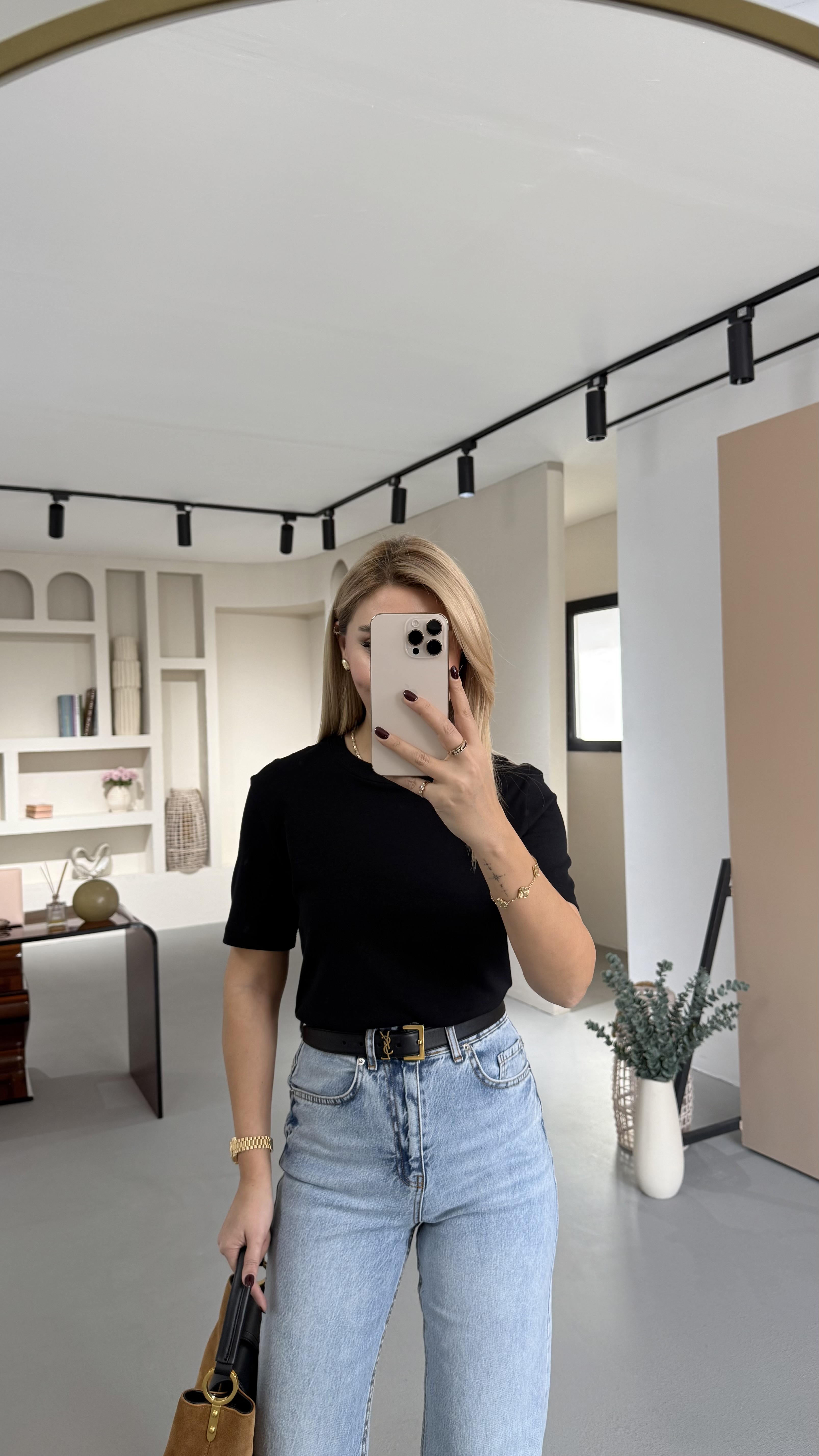 Premium Seri Bisiklet Yaka Pamuklu Siyah Basic Tshirt