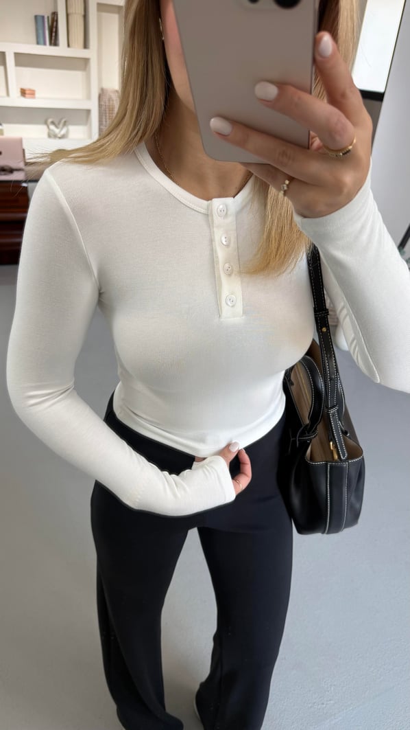 Premium Seri Düğmeli Beyaz Basic Bluz