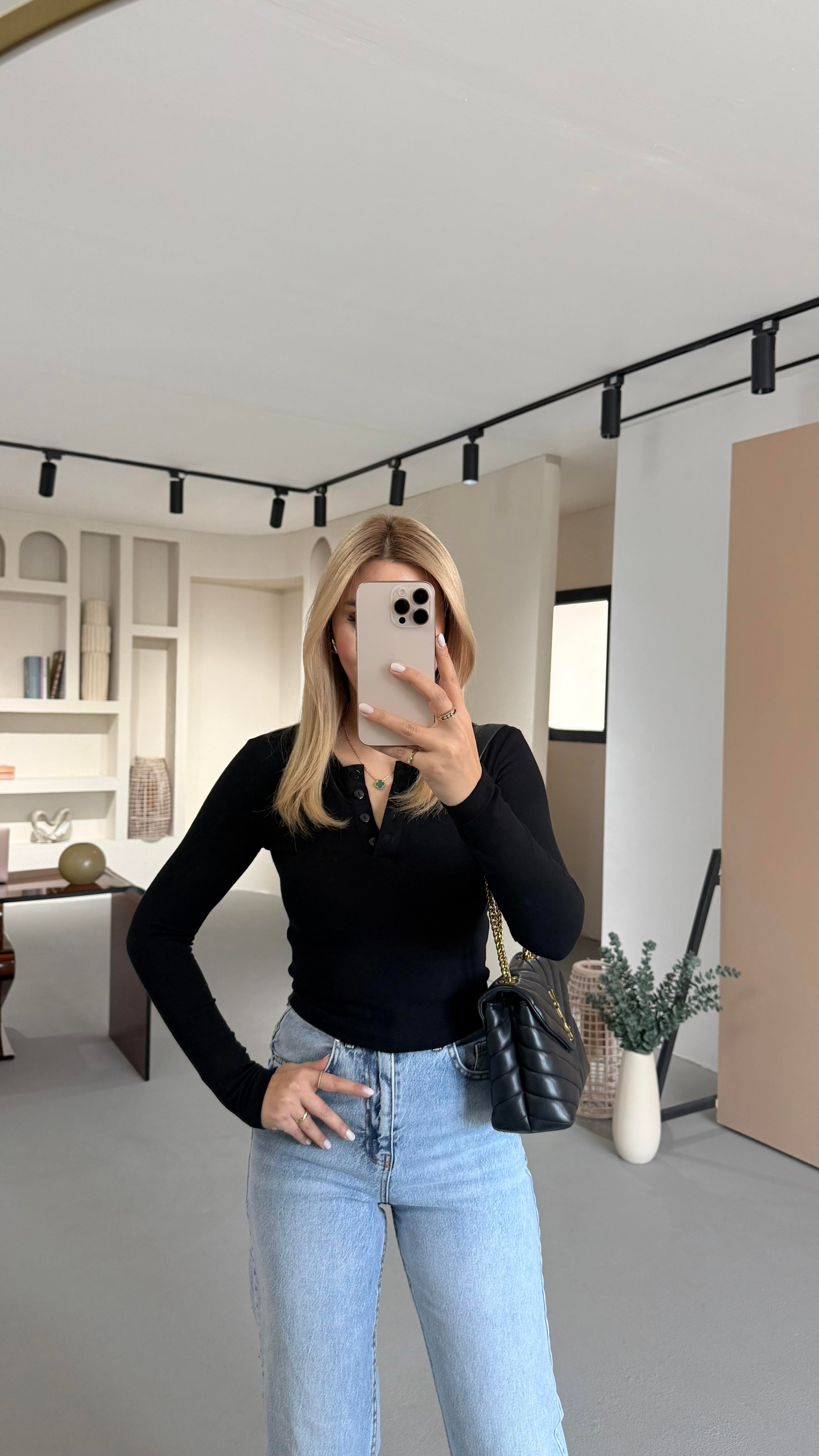Premium Seri Düğmeli Siyah Basic Bluz (BLZ-0237-SYH)