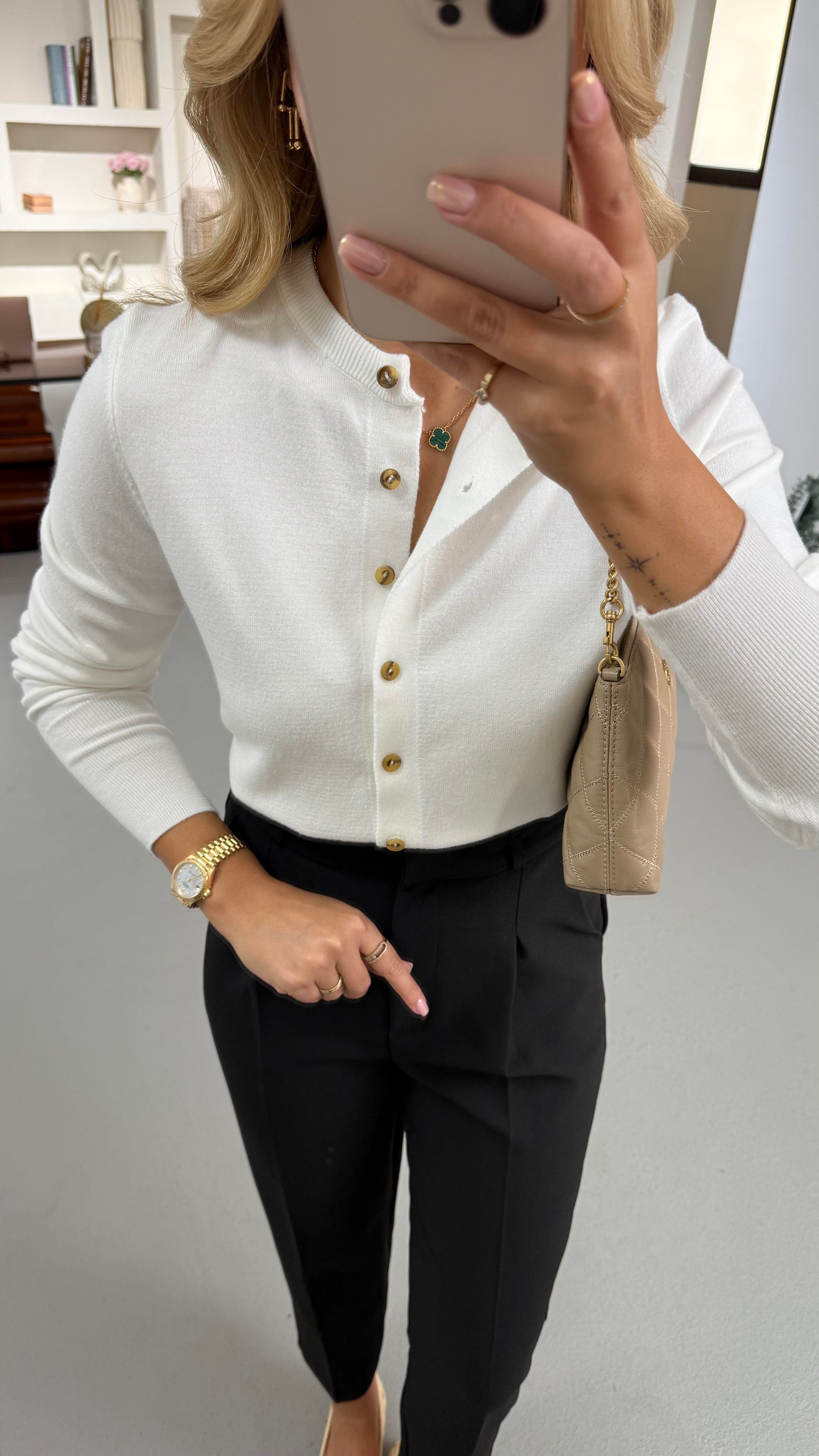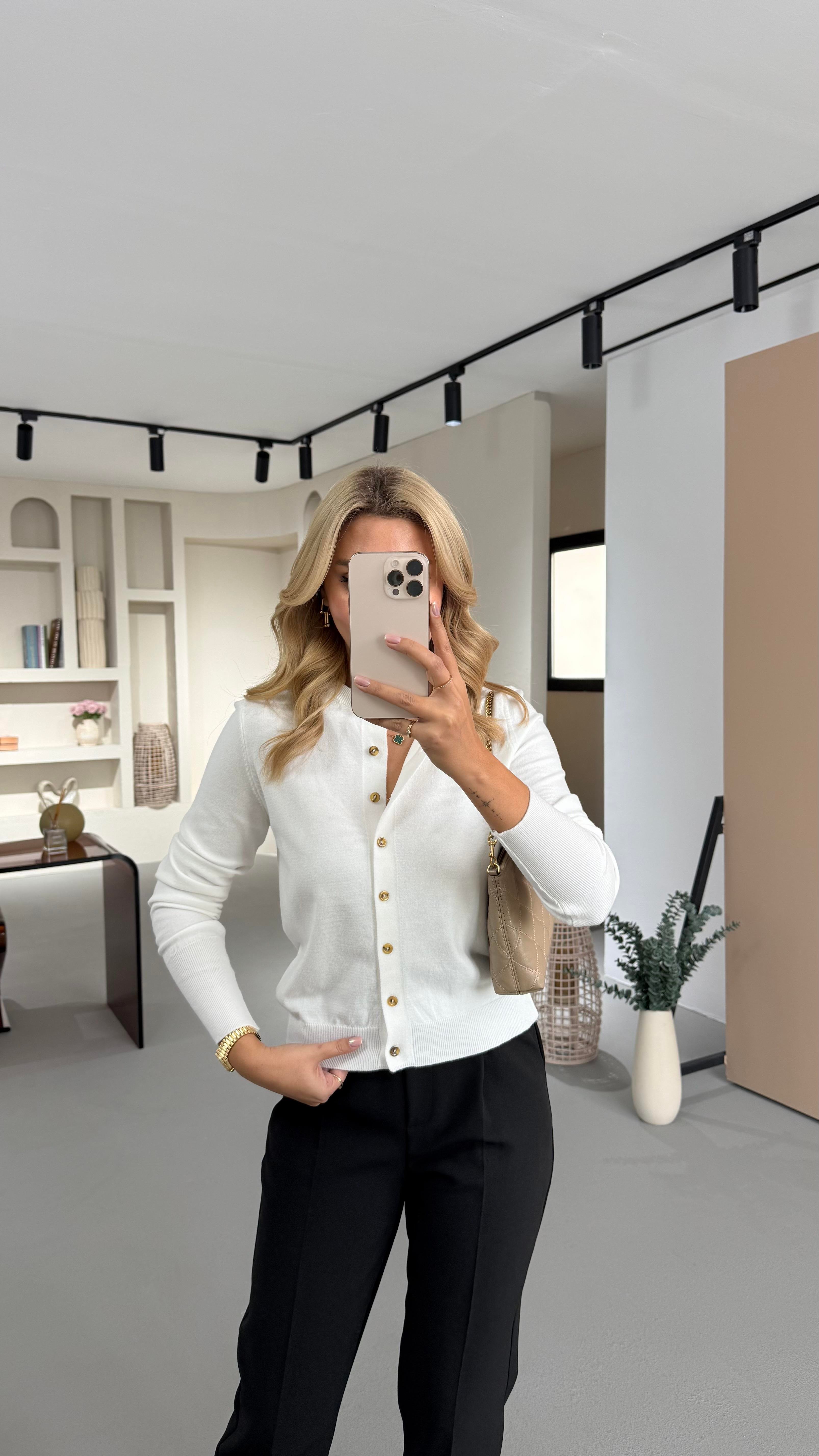 Premium Seri Kemik Düğme Detay Beyaz Yumoş Hırka (HRK-0079-BYZ)