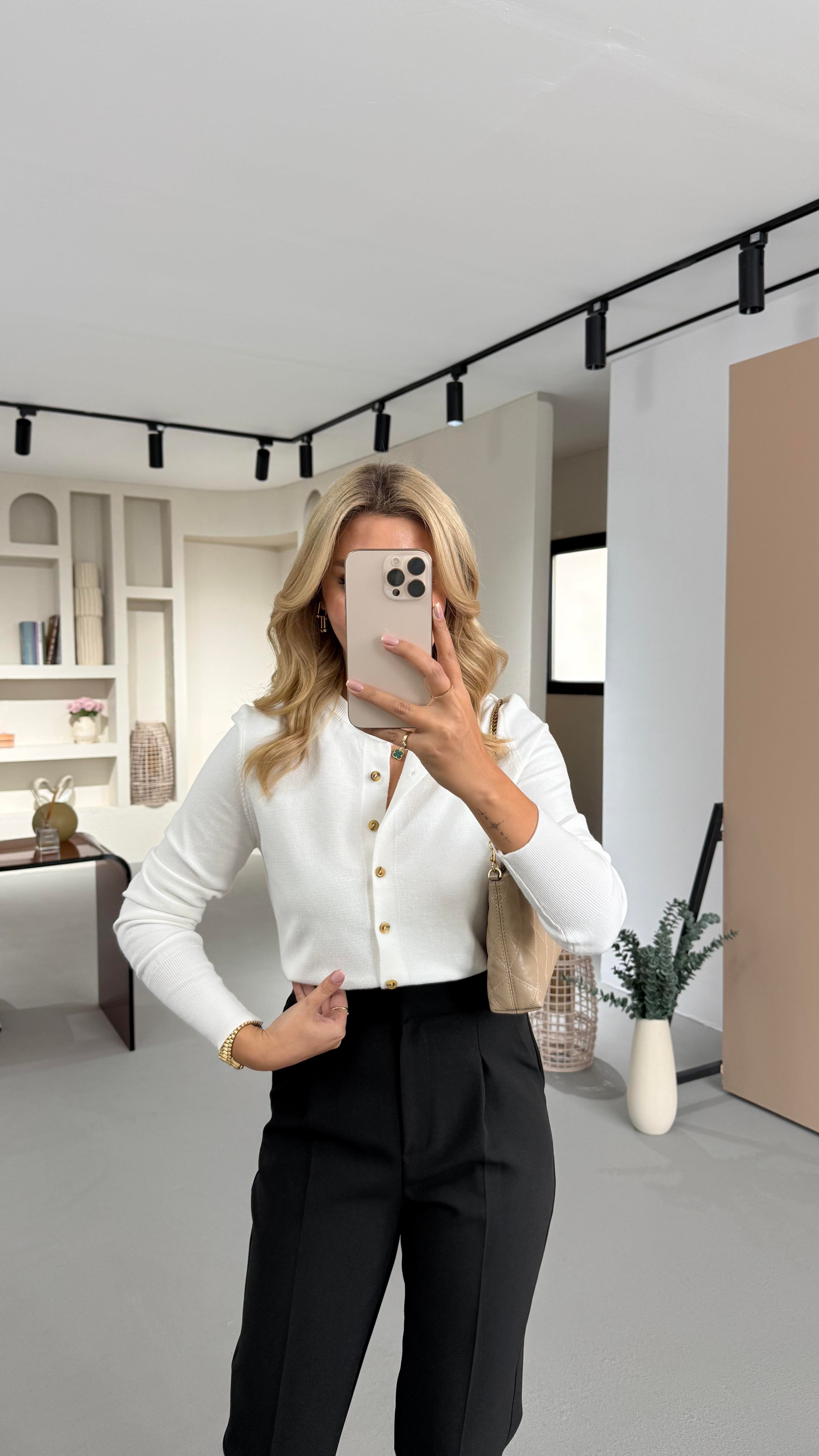 Premium Seri Kemik Düğme Detay Beyaz Yumoş Hırka