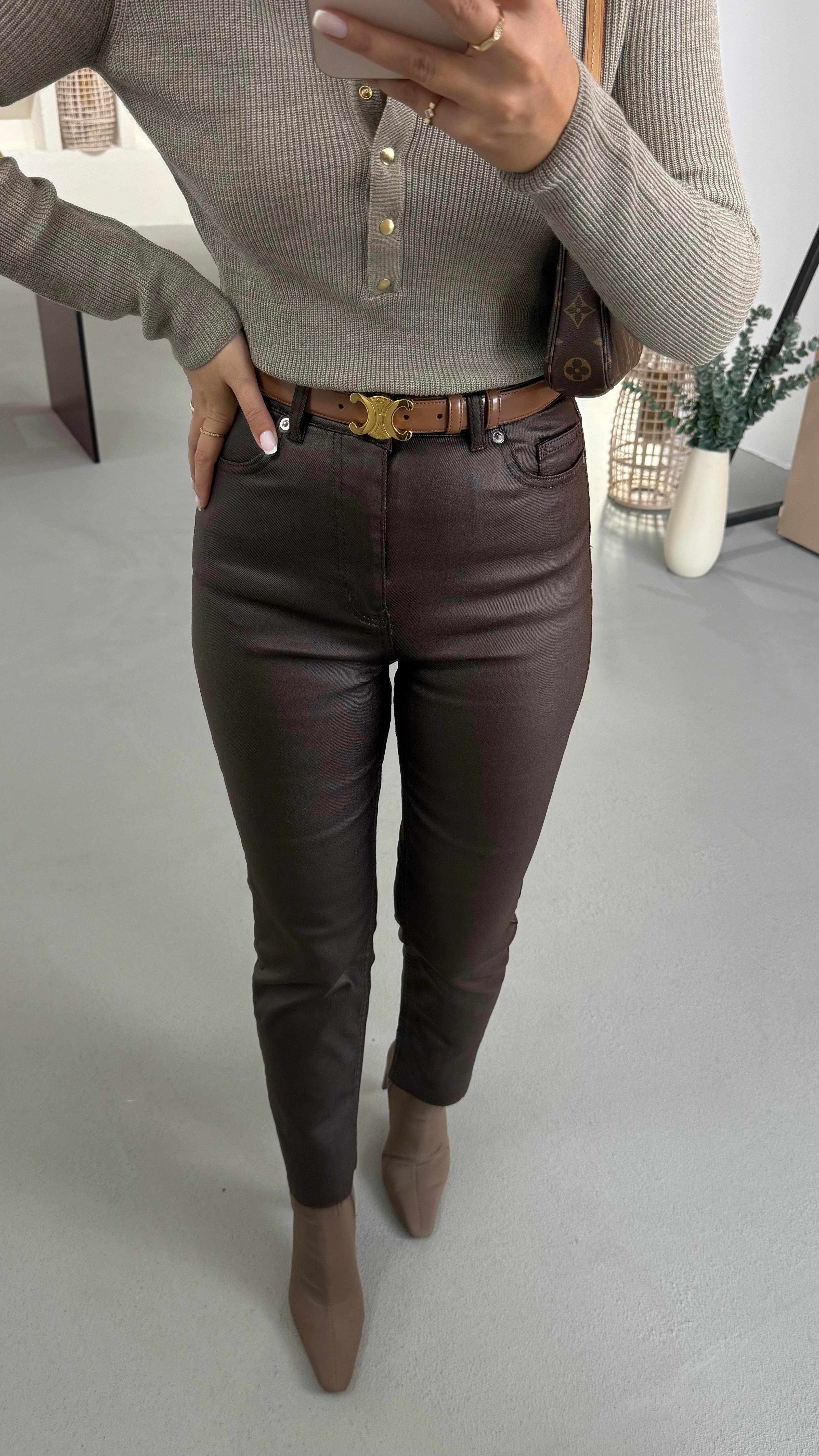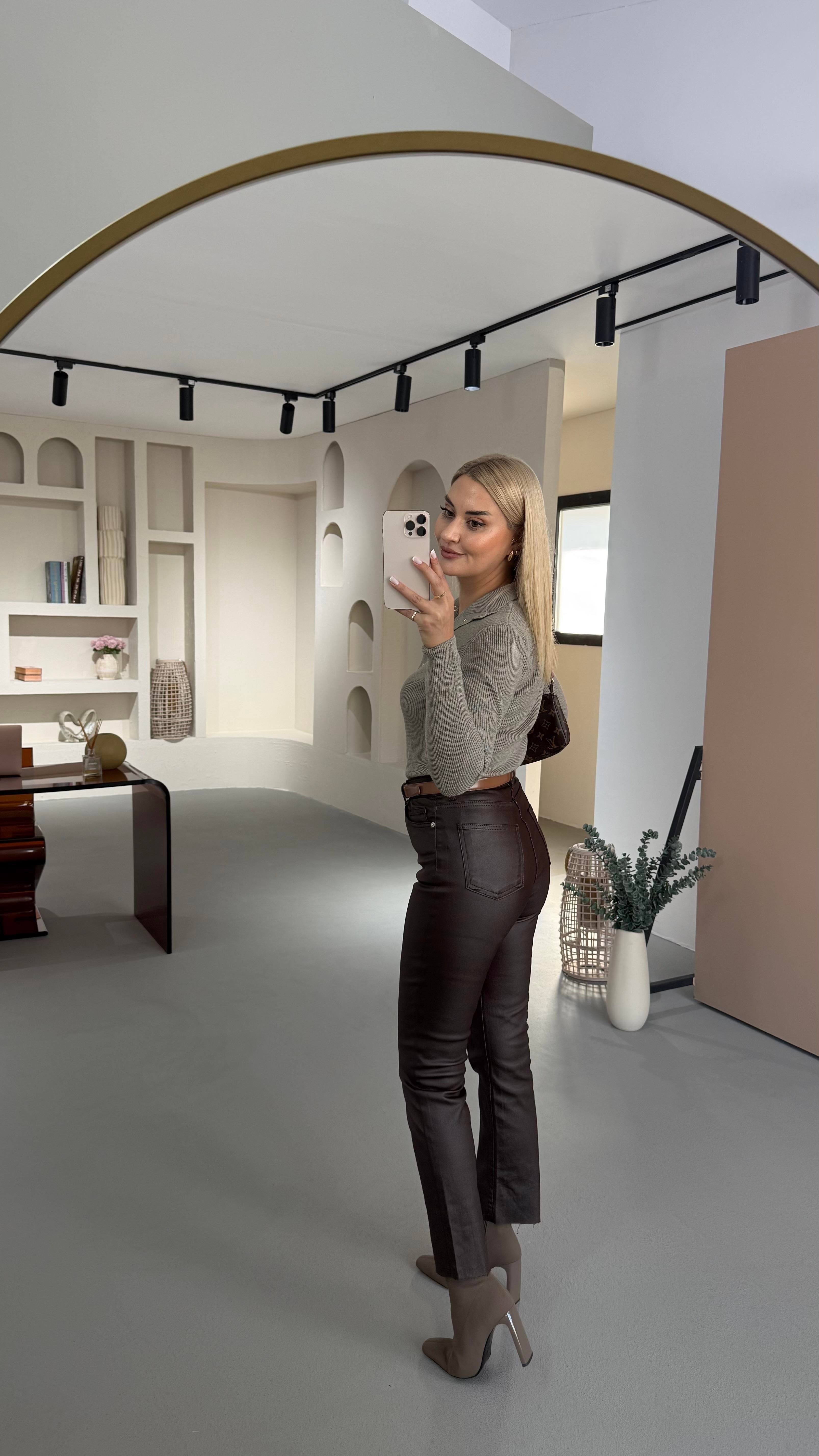 Premium Seri Kesik Paça Kahve Mumlu Pantolon (PNT-0574-KHV)