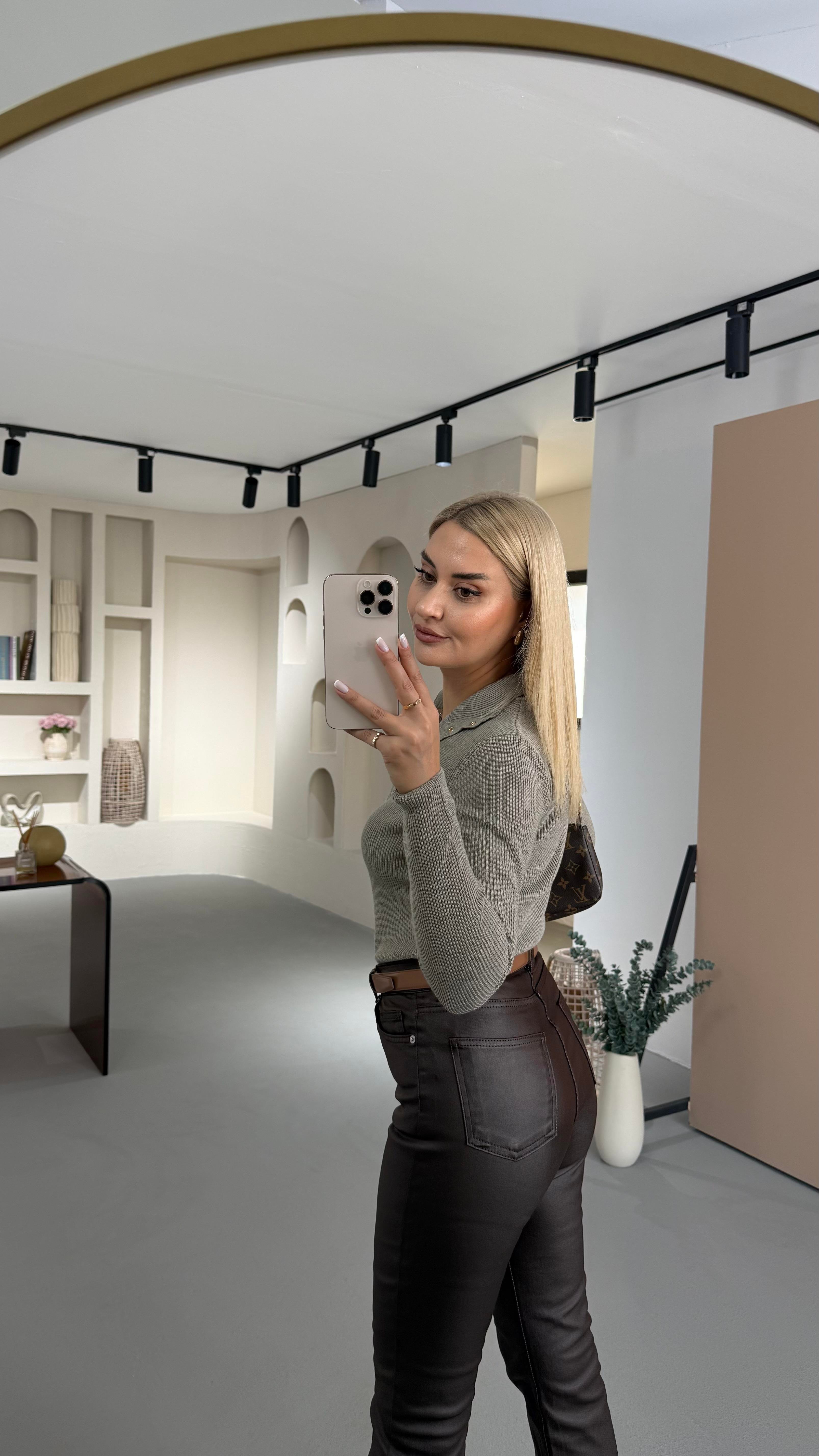 Premium Seri Kesik Paça Kahve Mumlu Pantolon