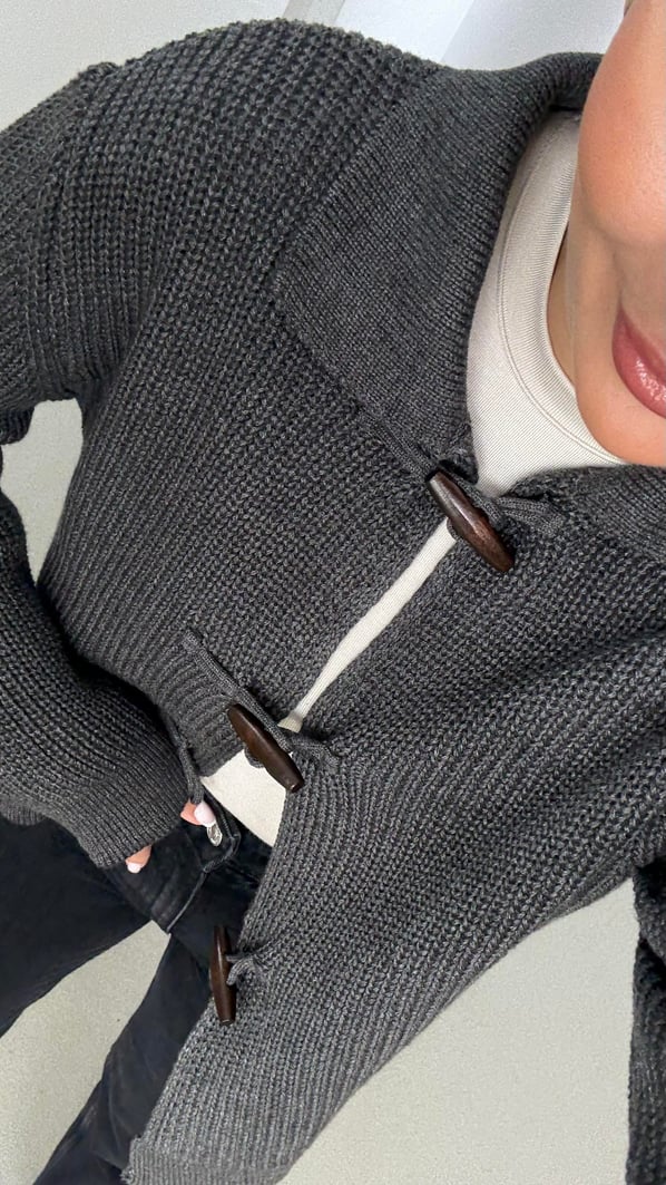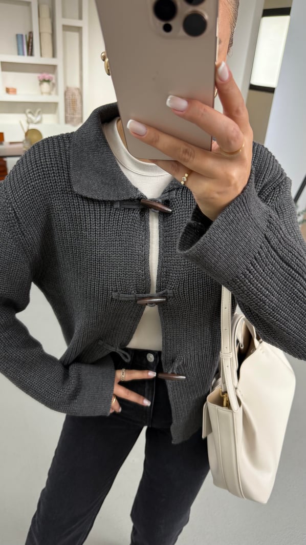 Premium Seri Kordon İlikli Selanik Örgü Antrasit Hırka