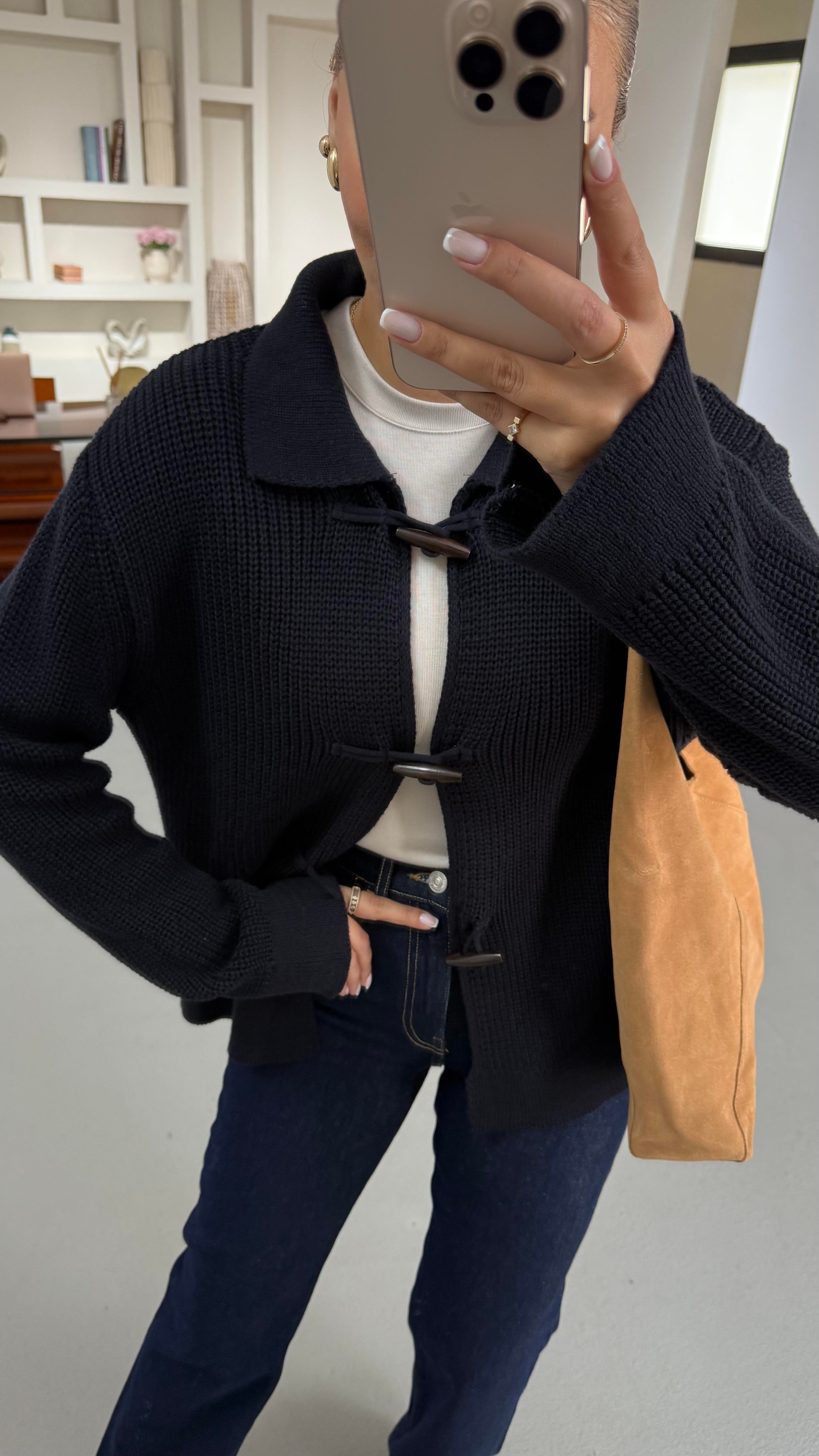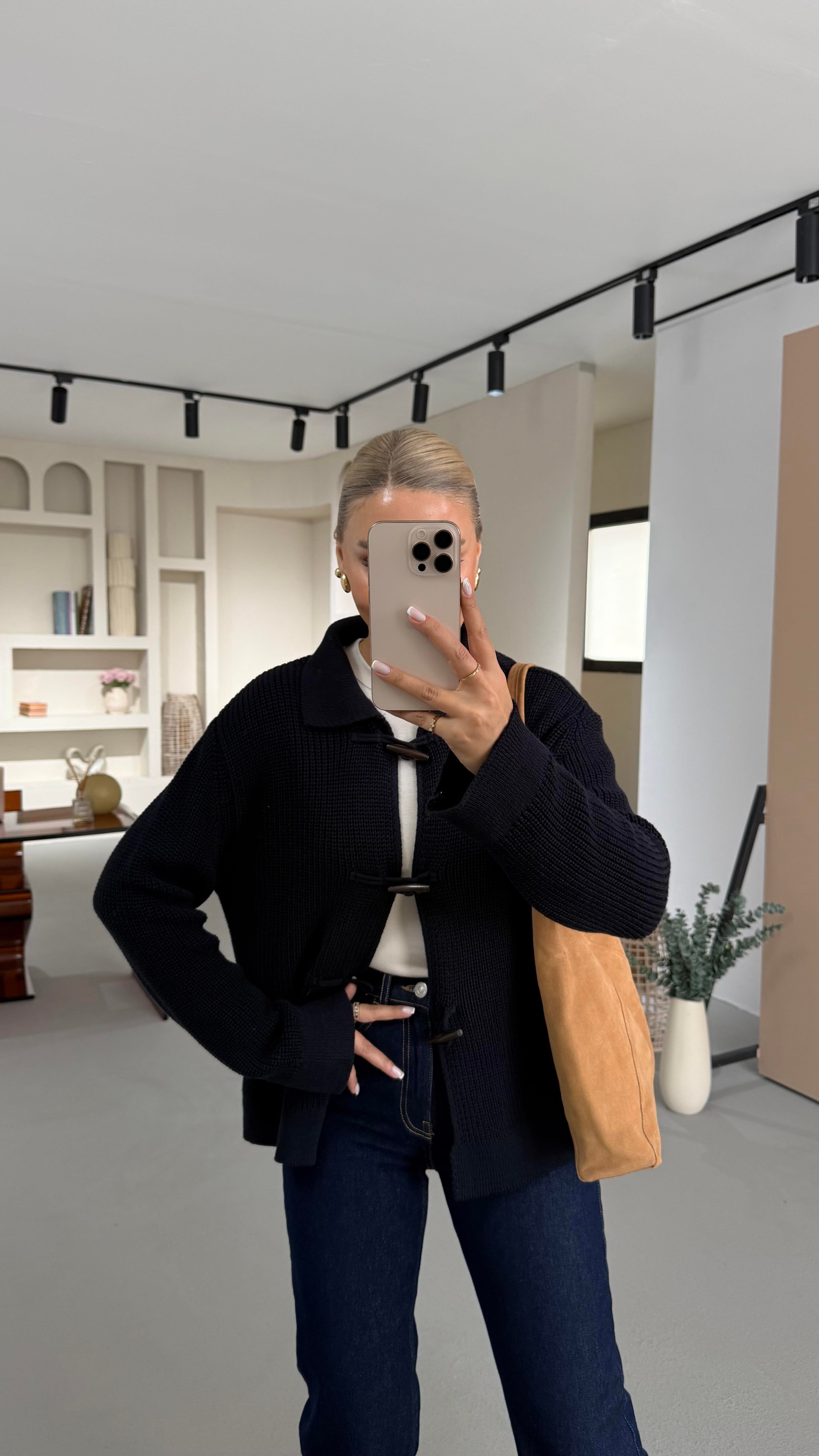 Premium Seri Kordon İlikli Selanik Örgü Lacivert Hırka
