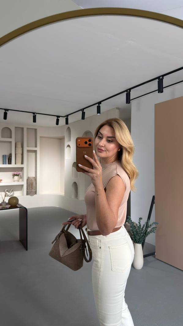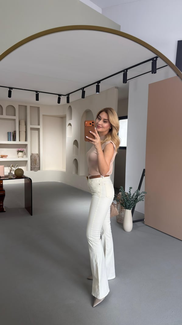 Premium Seri Likralı Krem İspanyol Paça Jean