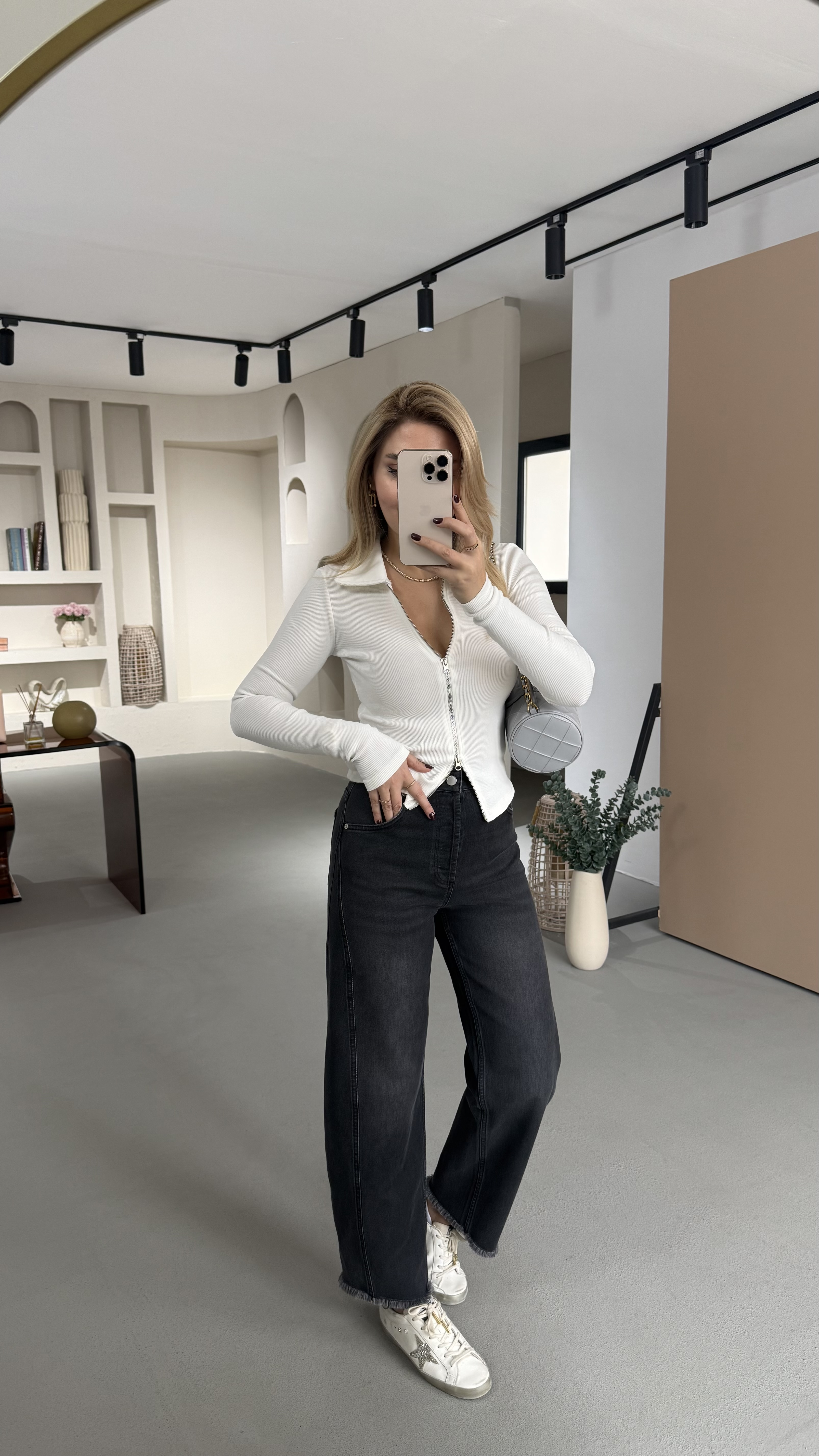 Premium Seri Paça Püsküllü Antrasit Slouchy Jean
