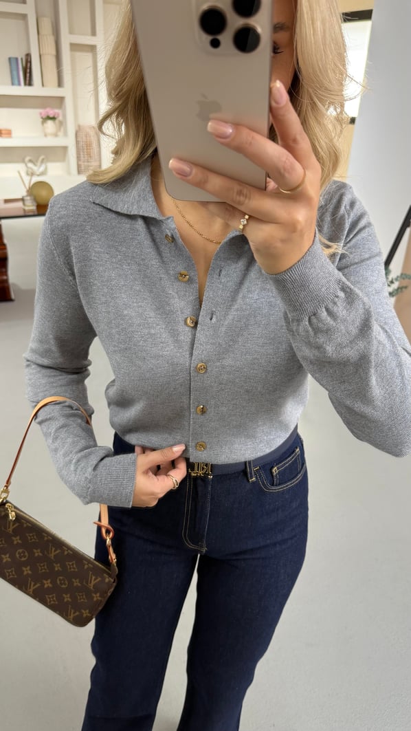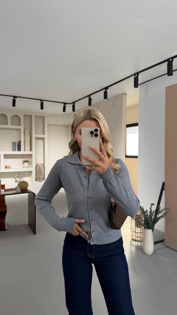 Premium Seri Polo Yaka Antrasit Yumuşak Dokulu Hırka