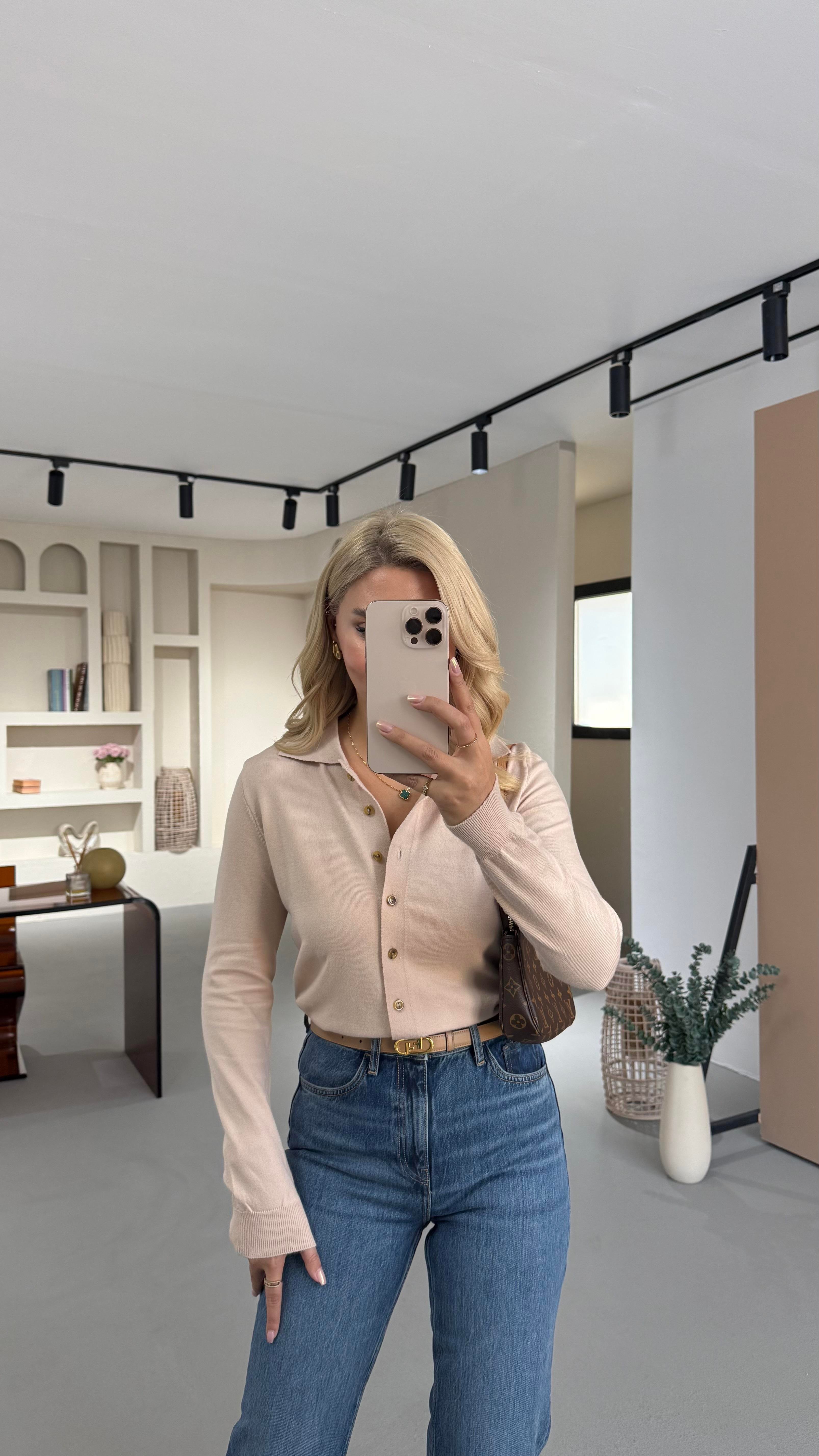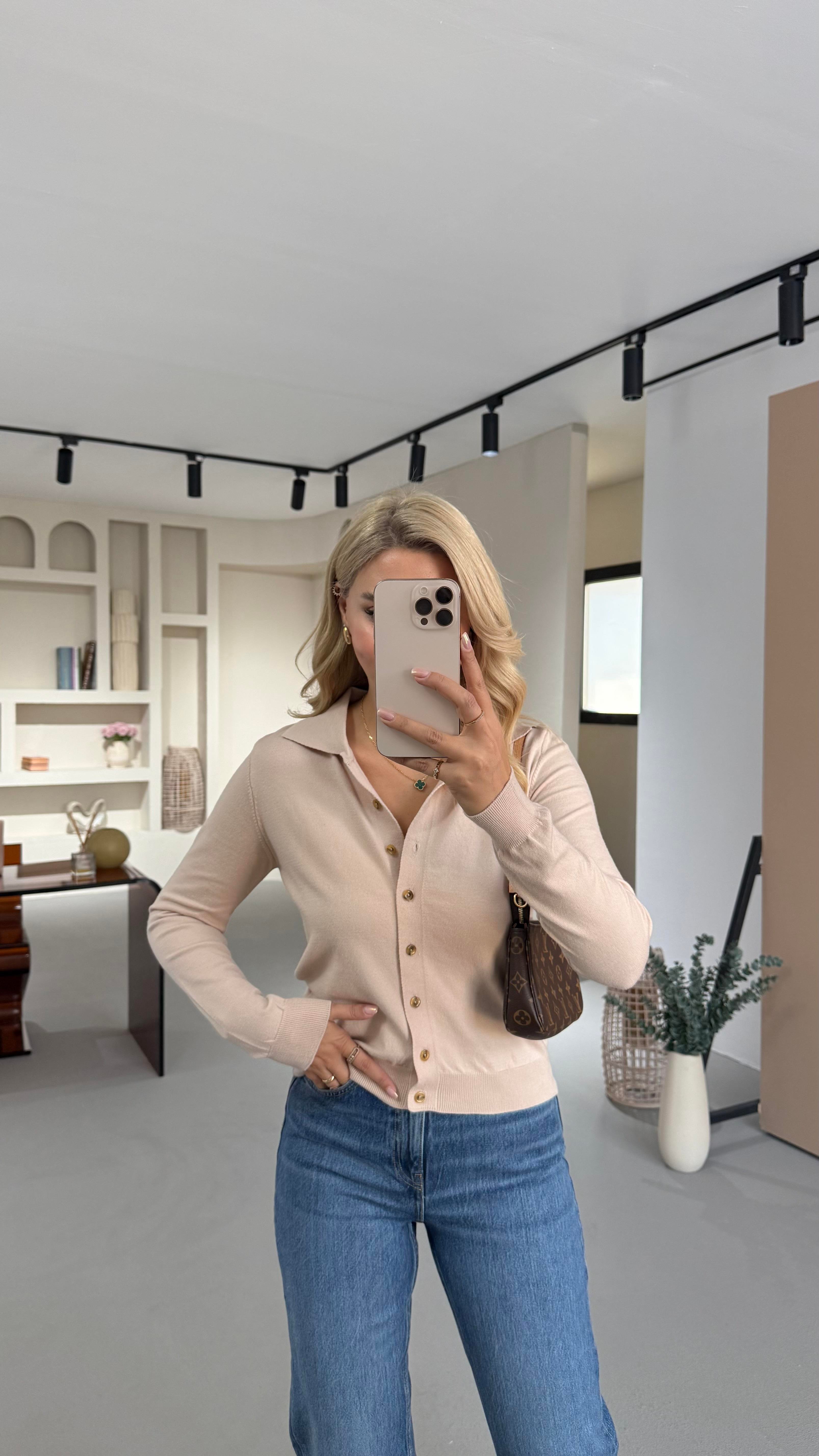 Premium Seri Polo Yaka Taş Yumuşak Dokulu Hırka (HRK-0082-TAŞ)