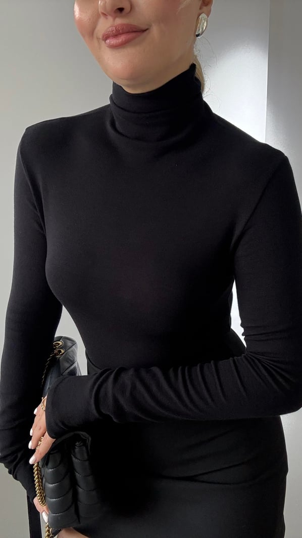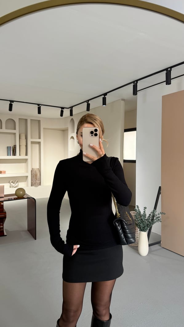 Premium Seri Siyah Balıkçı Yaka Pamuklu Basic Bluz