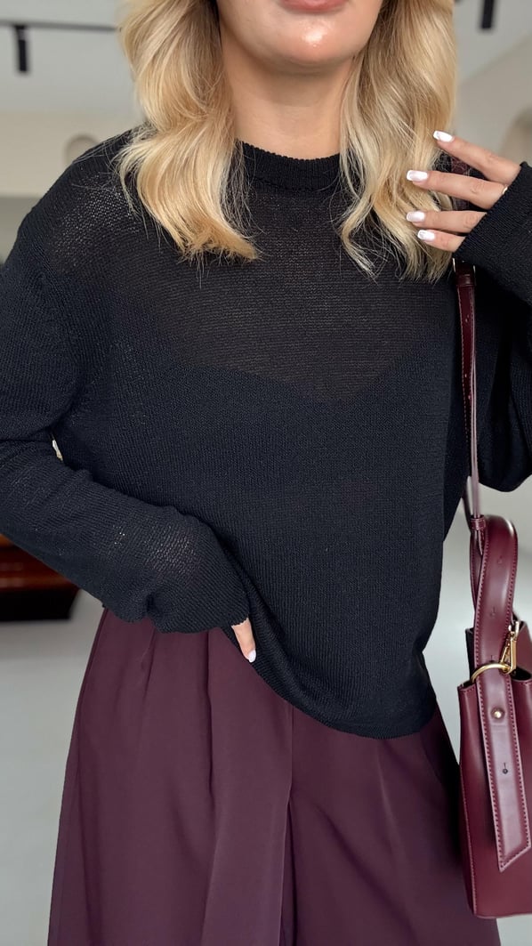 Premium Siyah Oversize Merserize Triko (TRK-0162-SYH)