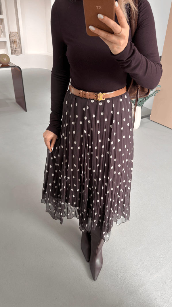 Puantiyeli Asimetrik Kahve Şifon Etek (ETK-0285-KHV)