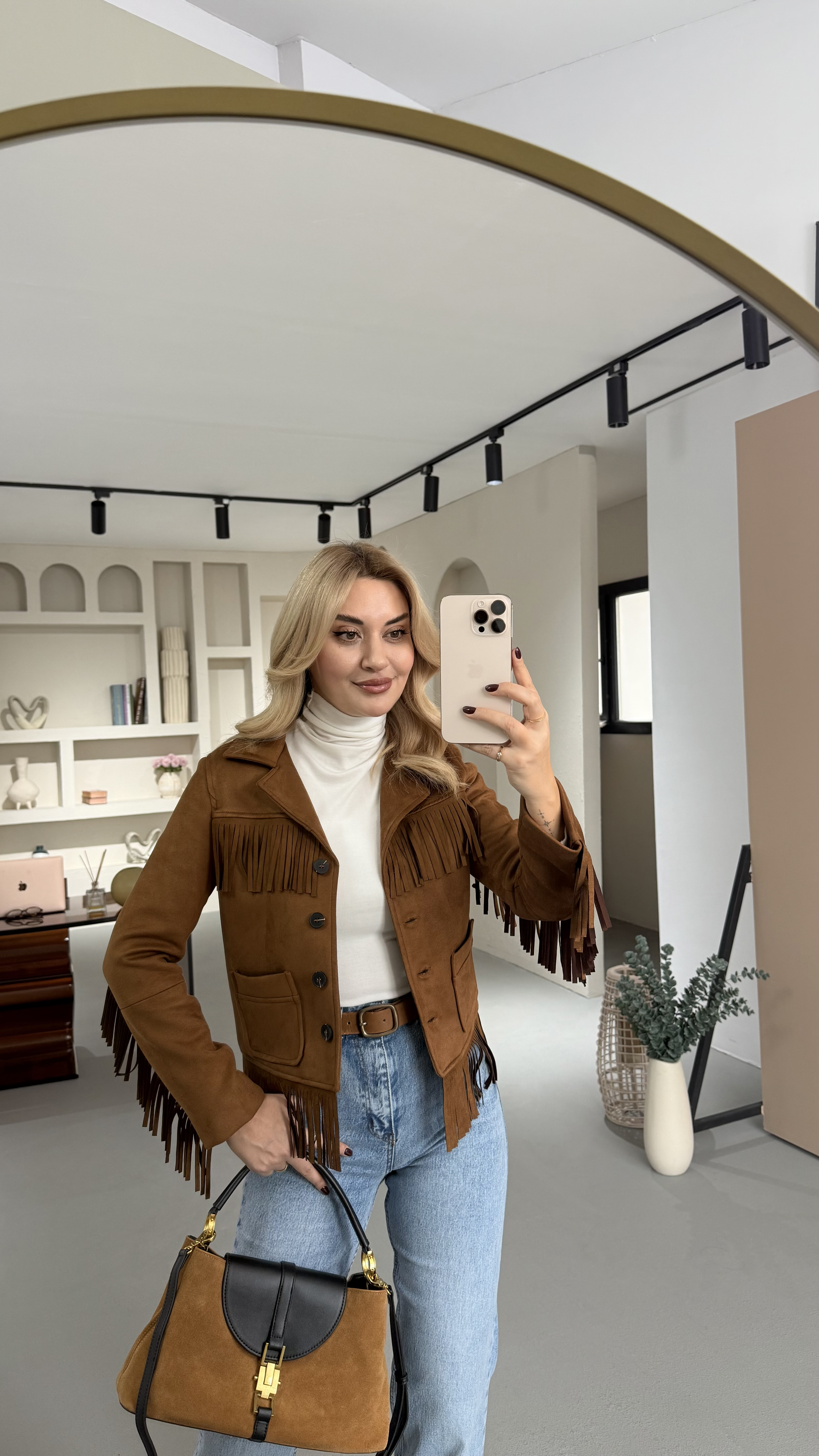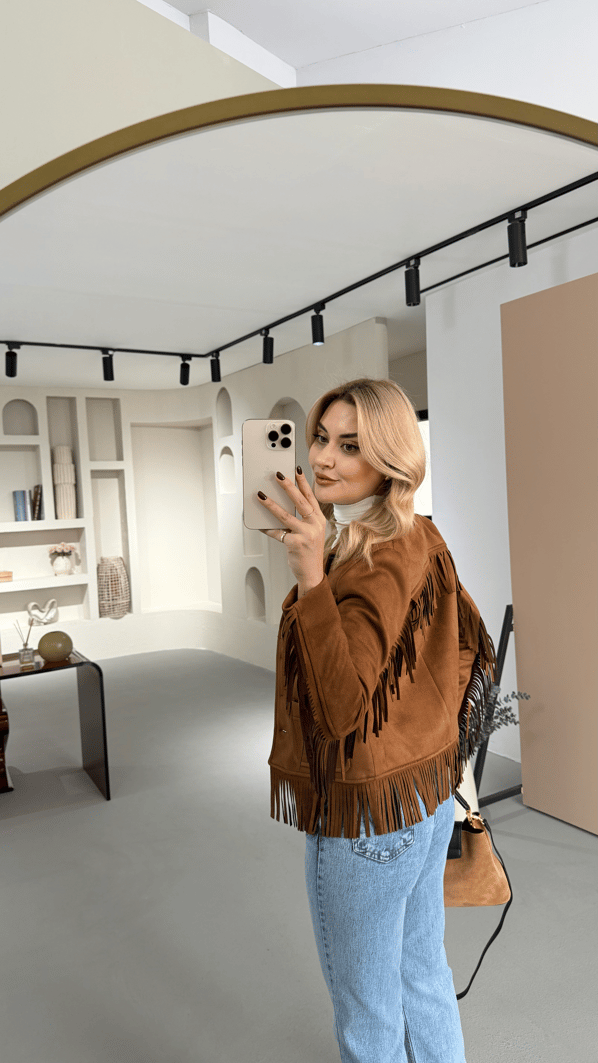 Püskül Detay Cepli Taba Süet Ceket (CKT-0188-TABA)