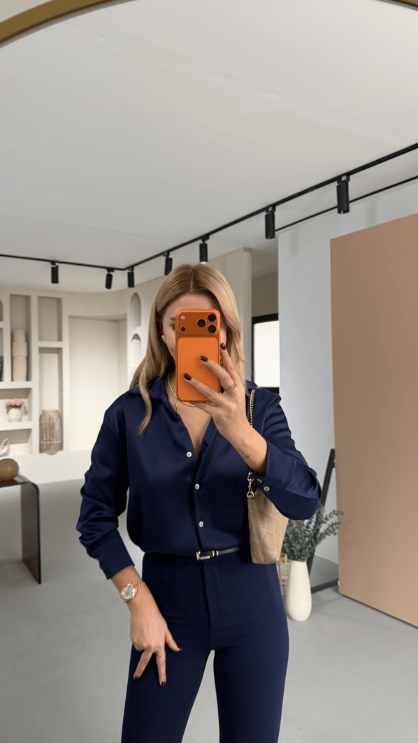 Sedef Düğmeli Lacivert Saten Gömlek (GMLK-0192-LCV)