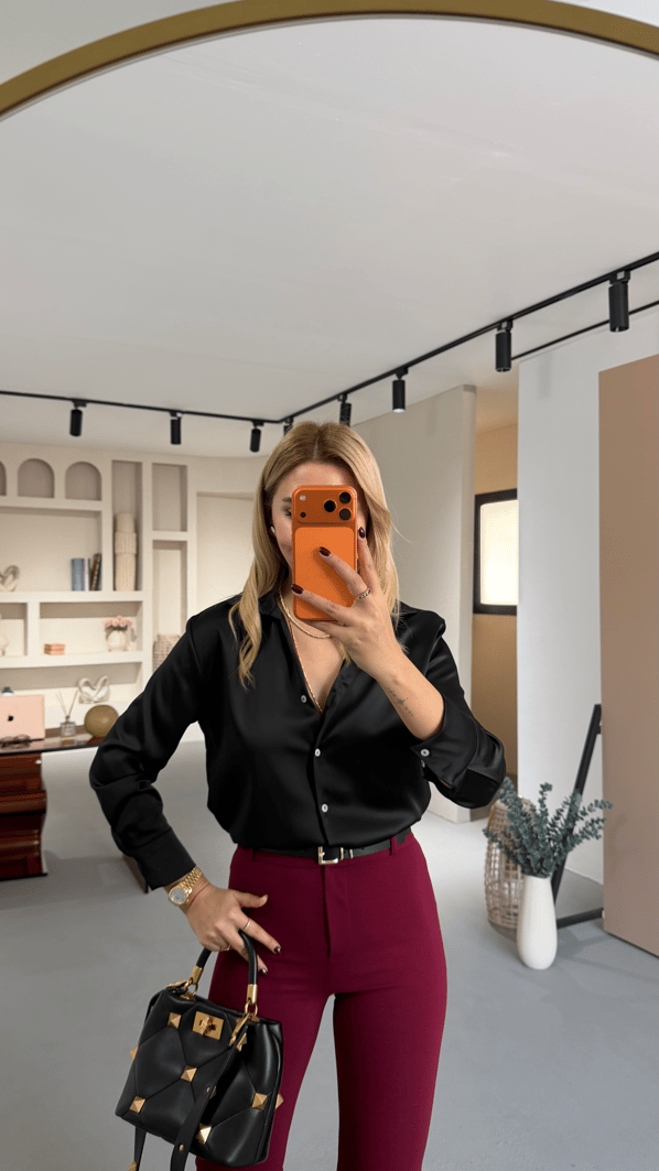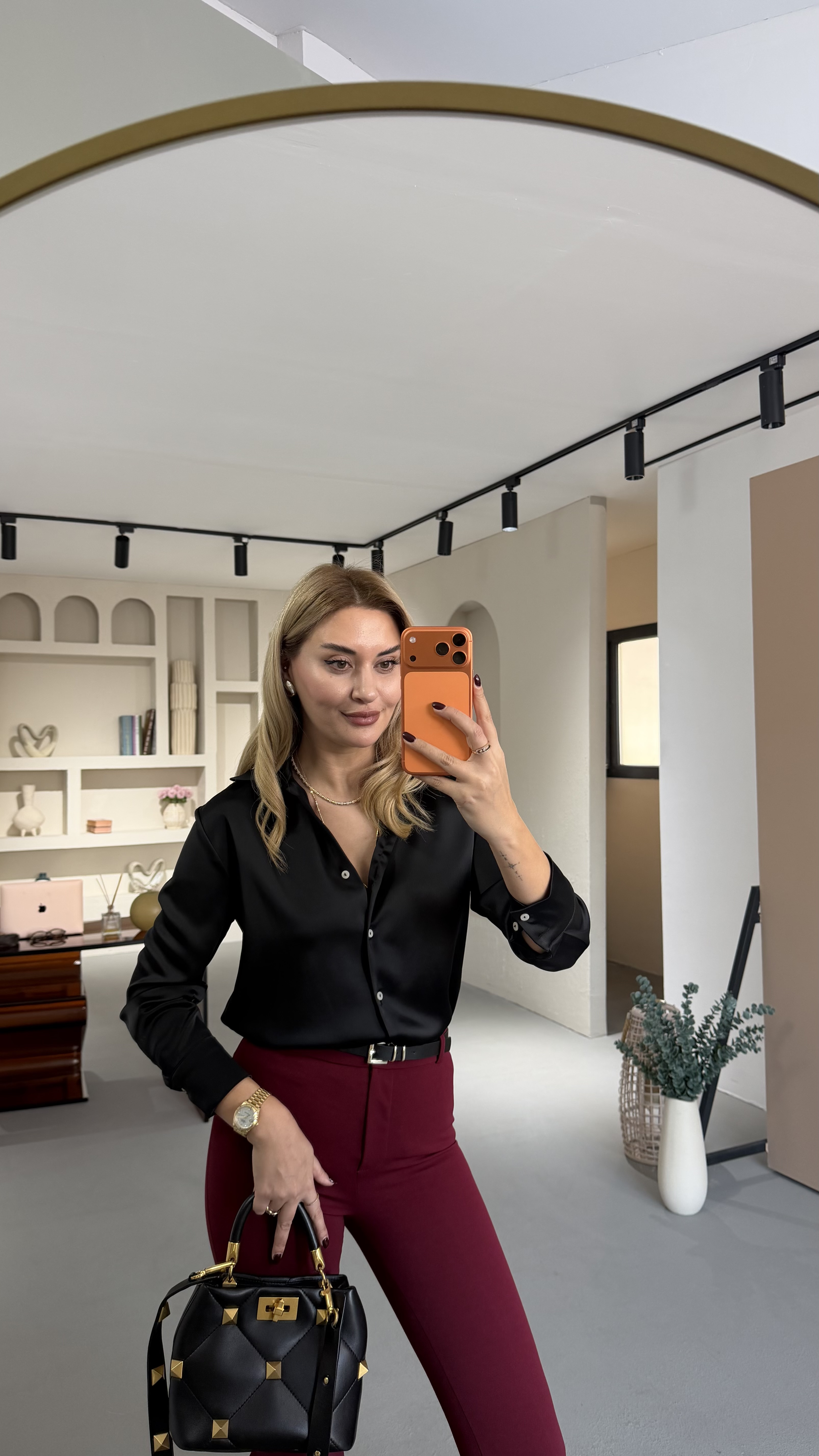 Sedef Düğmeli Siyah Saten Gömlek (GMLK-0192-SYH)