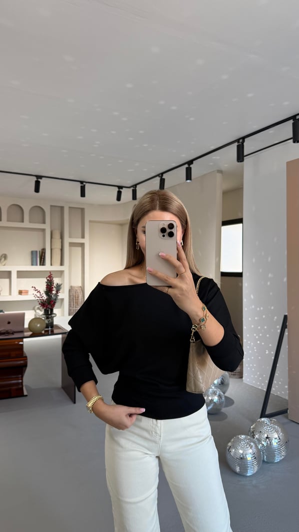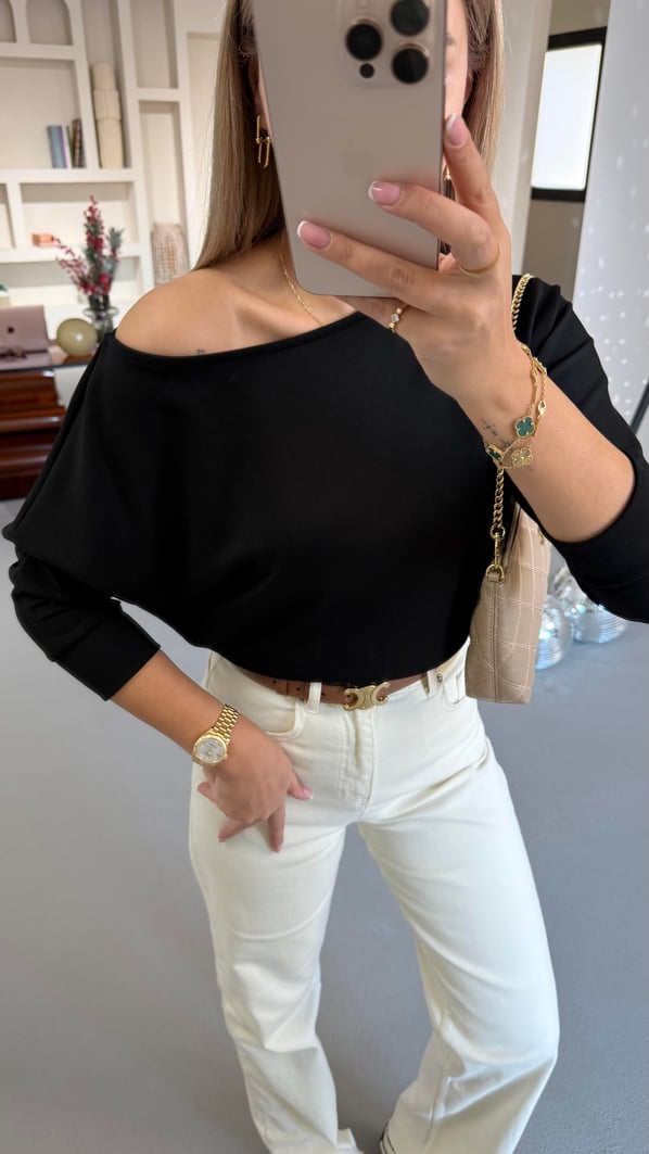 Siyah Kayık Yaka Modal Bluz