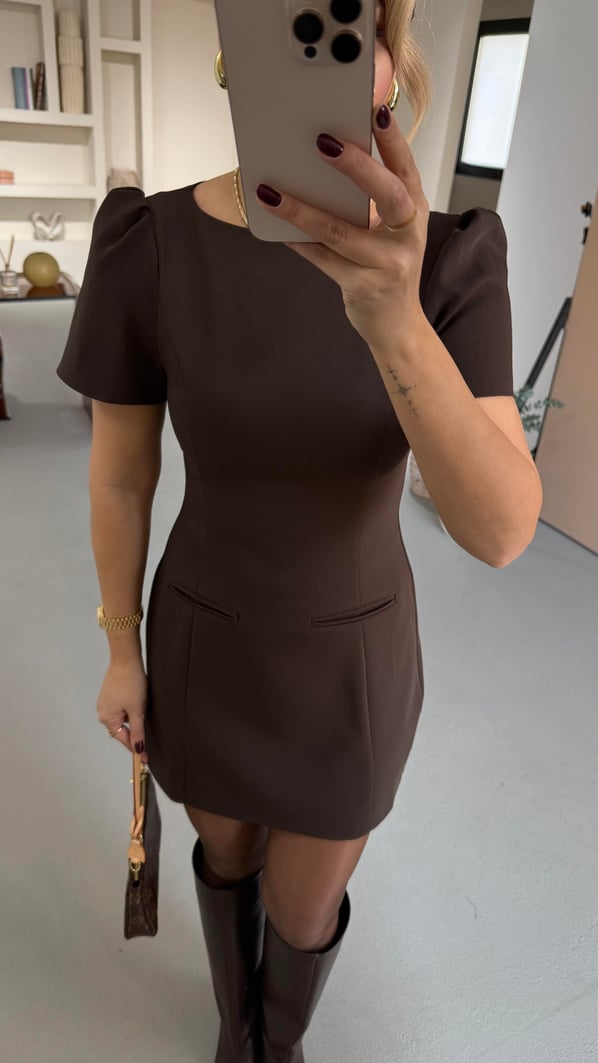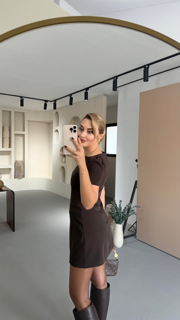 Süs Cep Detay Kahve İçi Şortlu Elbise