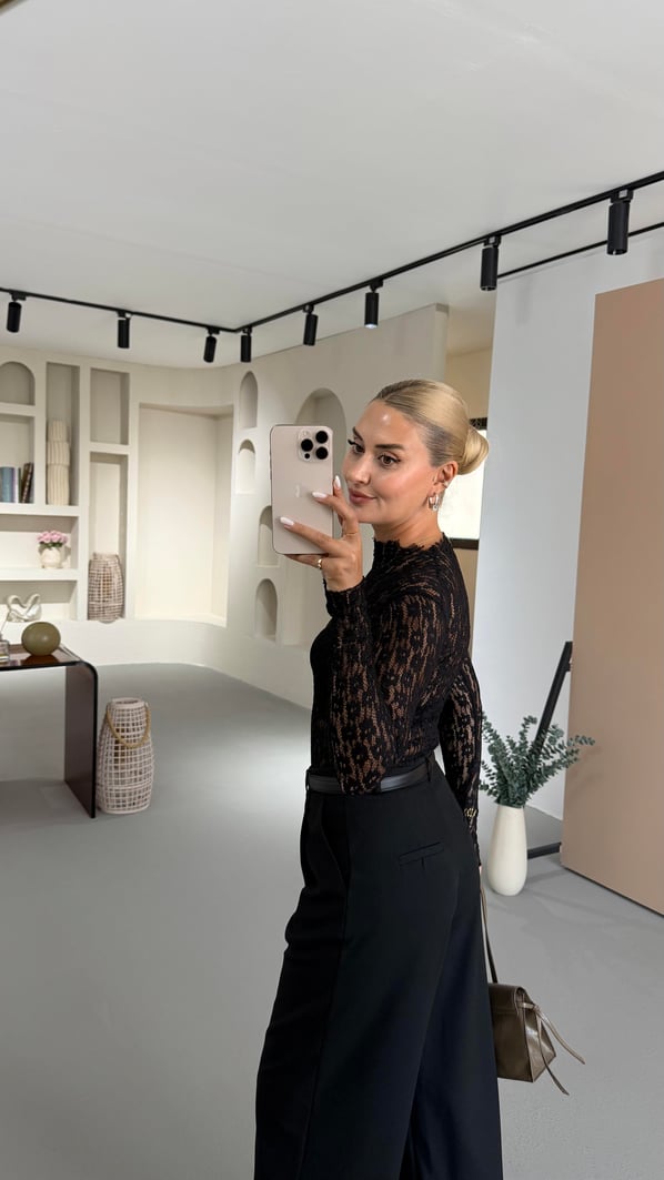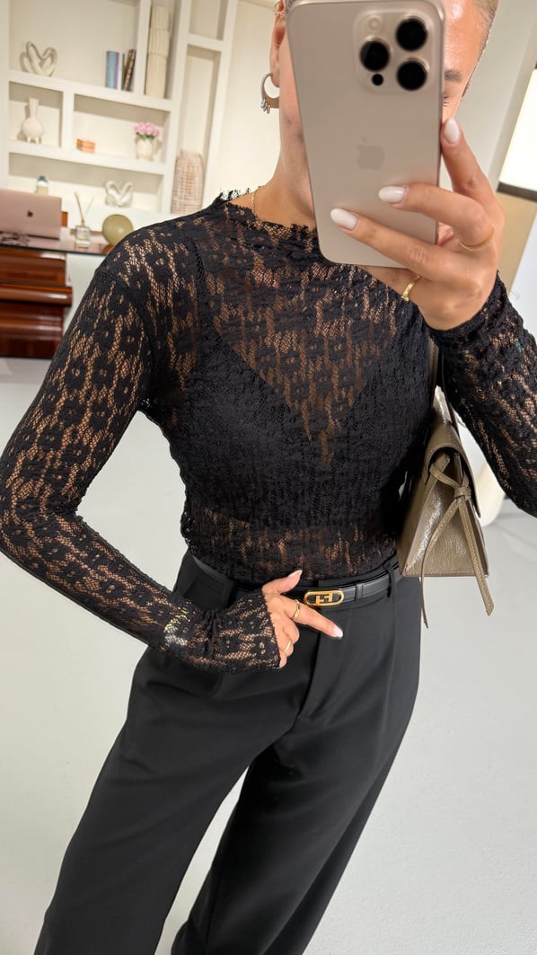 Transparan Siyah Dantel Bluz (BLZ-0210-SYH)