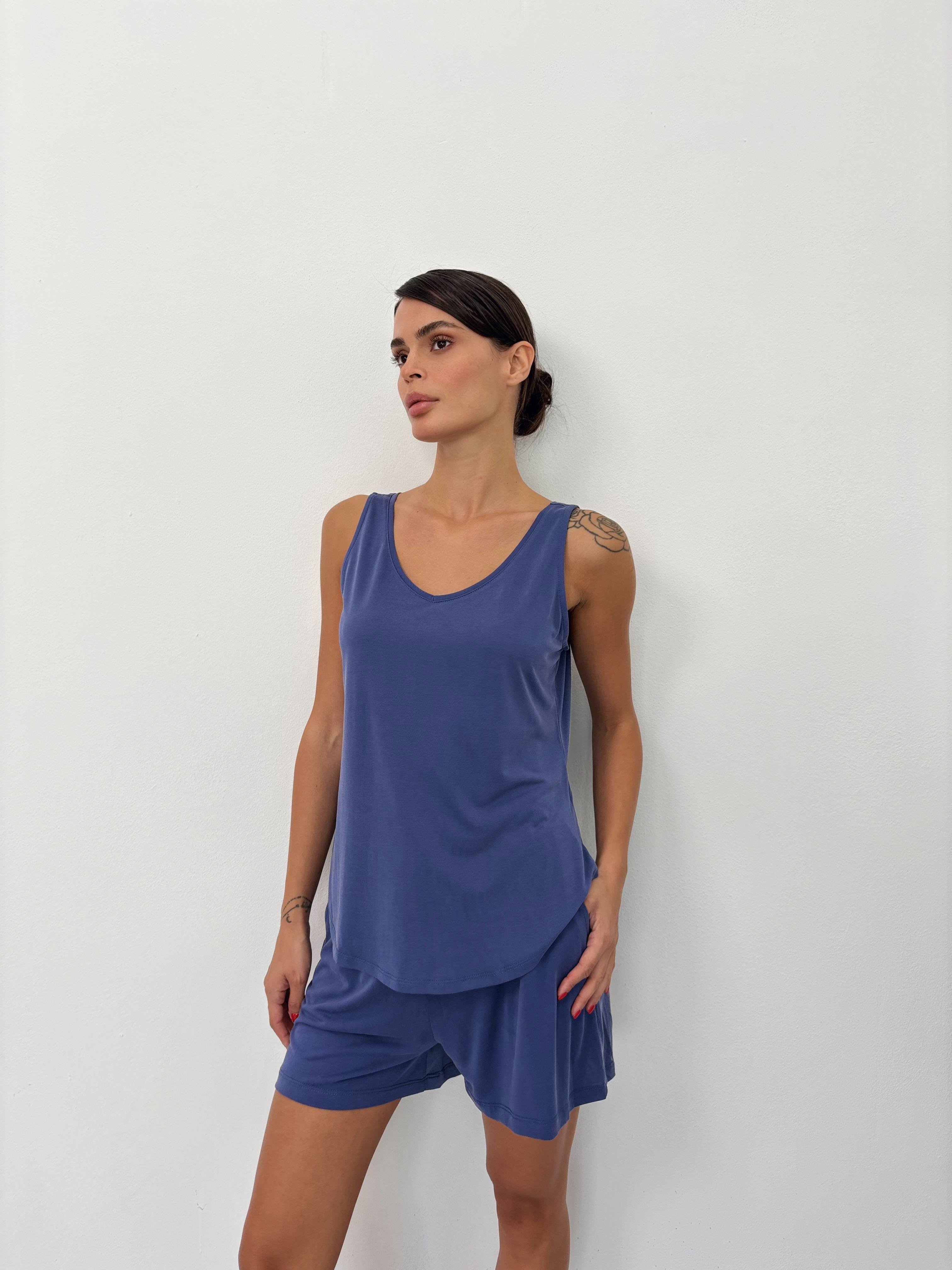 V Yaka Dökümlü İndigo Modal Atlet (PJS-0003-ING)