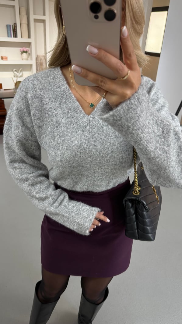 V Yaka Oversize Yumoş Gri Kazak