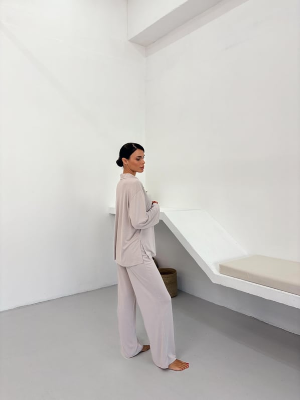 Yırtmaç Detay Dökümlü Taş Modal Pijama Gömlek (PJS-0006-TAŞ)
